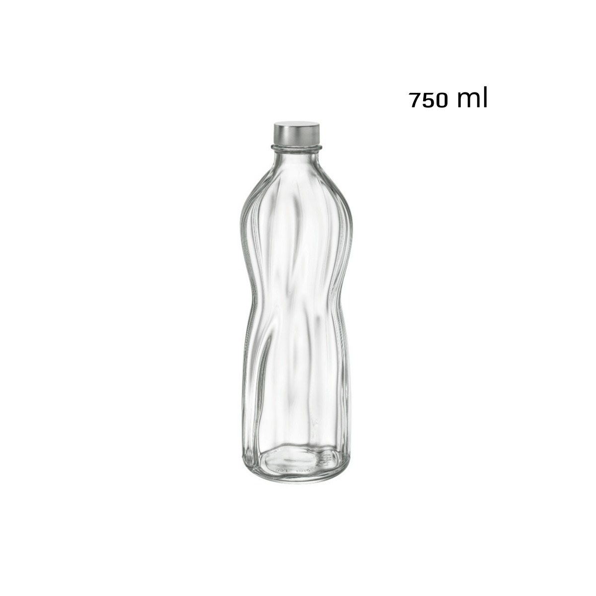 בקבוק מים 750 מ"ל מזכוכית איכותית וחזקה שמיוצר באיטליה על ידי המותג Bormioli Rocco.